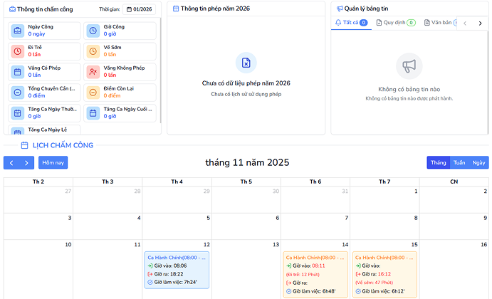 Đầy đủ các tính năng chấm công chuẩn hóa hiện đại